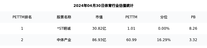 从估值角度看:中体产业最新市盈率PETTM为60.99,在行业内排名2/3,处于16.29分位。