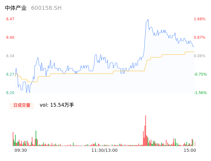 04月22日,中体产业收报8.37,股价涨幅0.48%,成交金额1.30亿元,换手率1.62%。