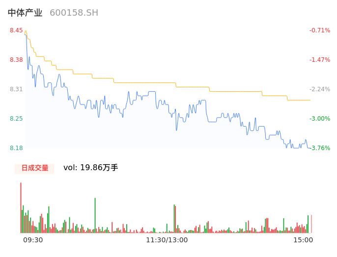 04月12日,中体产业收报8.18,股价涨幅-3.76%,成交金额1.64亿元,换手率2.07%。