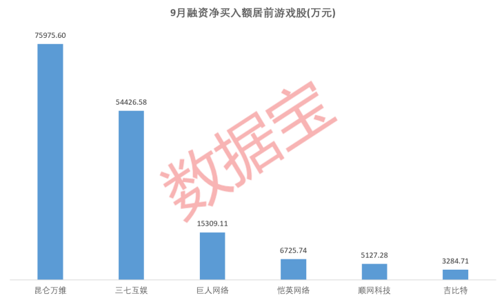 证券时报·数据宝梳理了9月(截至9月23日)融资净买入额居前的游戏股,供读者参考。其中,融资净买入额超1亿元的个股有3只,分别为昆仑万维、三七互娱、巨人网络,对应金额依次为7.6亿元、5.44亿元、1.53亿元。