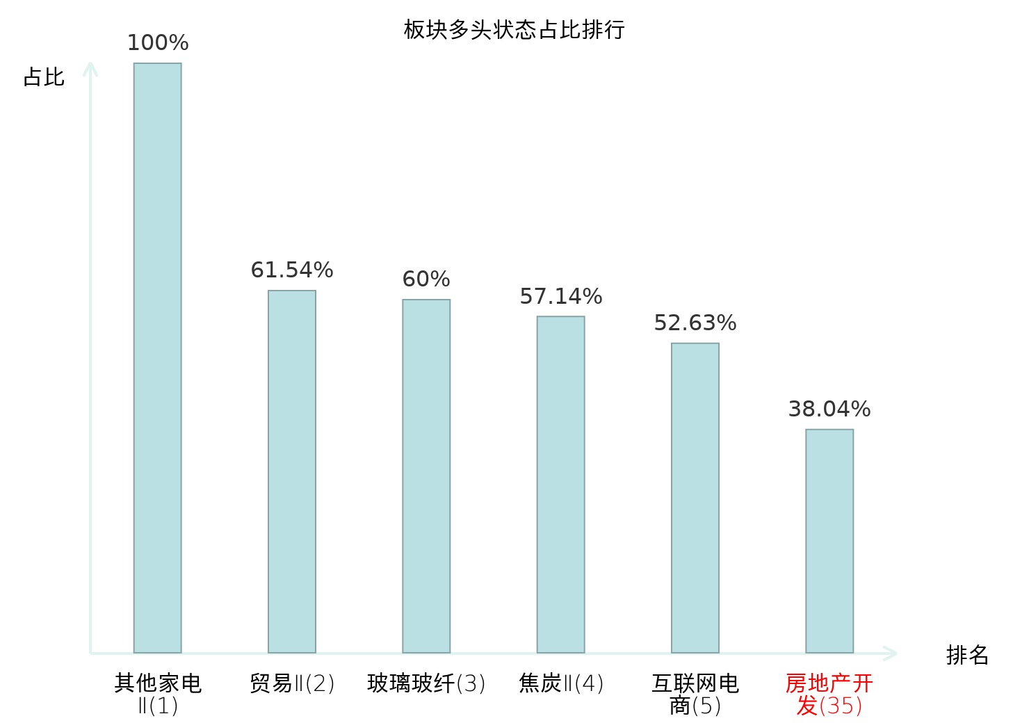 全市场所有行业板块中主力多头状态占比排名中,其他家电Ⅱ板块位居第一。教育板块名次提升最快,较昨日上升50位。