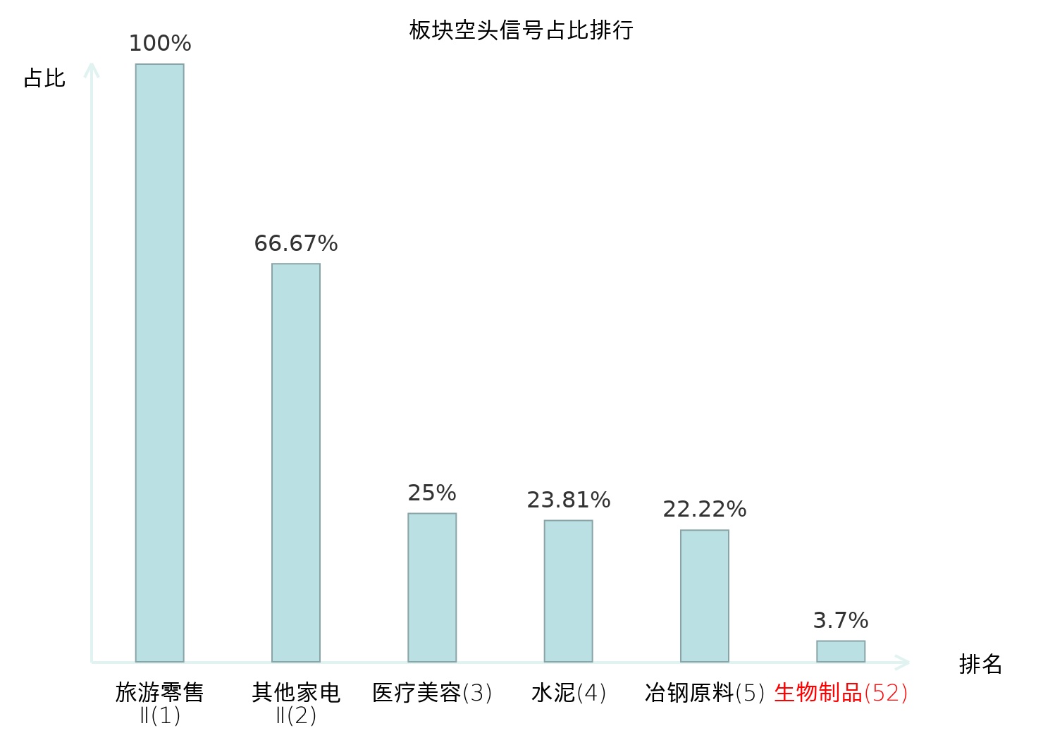 全市场所有行业板块中主力空头信号占比排名中,旅游零售Ⅱ板块位居第一。电机Ⅱ板块名次提升最快,较昨日上升113位。