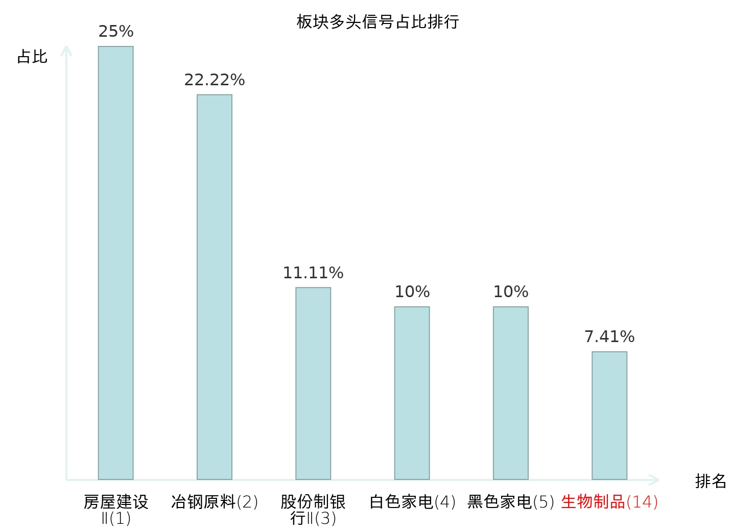 全市场所有行业板块中主力多头信号占比排名中,房屋建设Ⅱ板块位居第一。房屋建设Ⅱ板块名次提升最快,较昨日上升119位。