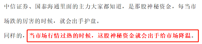 昨天重点提醒大家中信证券尾盘有31亿的卖单,再结合中信证券、国泰海通、华泰证券等国资背景券商的走势,就发现有【神秘资金已经开始给股市降温了】。让大家操作的时候要小心点,别被胜利冲昏了头脑。