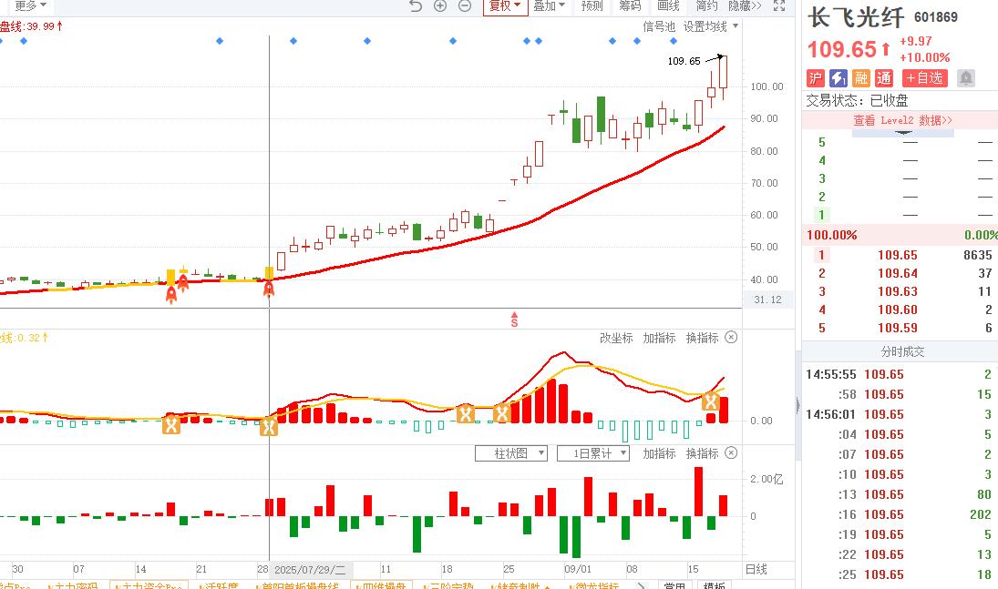 1)20250729-长飞光纤-四维操盘-近期出现火箭信号且底部量柱由绿转红