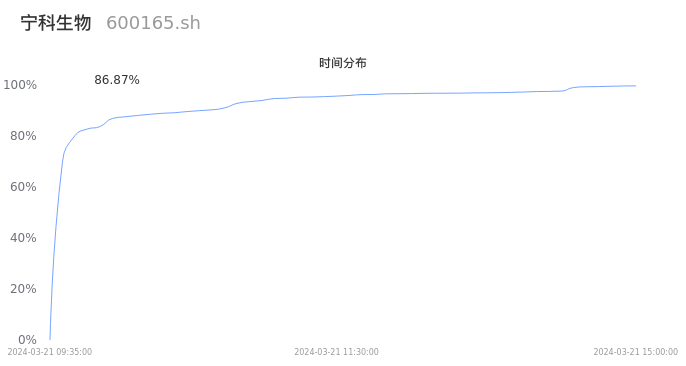 根据成交分布分析,该股票当天缩量成交,成交清淡。时间上看,早盘前半小时成交量占据当天总成交量的86.87%;价格上看,成交呈现一字涨停。成交分布分析主要研究股票成交的分布特性,不具有预测功能,请知悉。