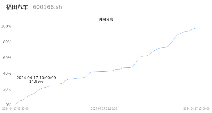 600166福田汽车2024年04月17日成交138.85万手,成交金额3.74亿元,相较昨日放量30.62万手,换手率2.11%,成交清淡。
