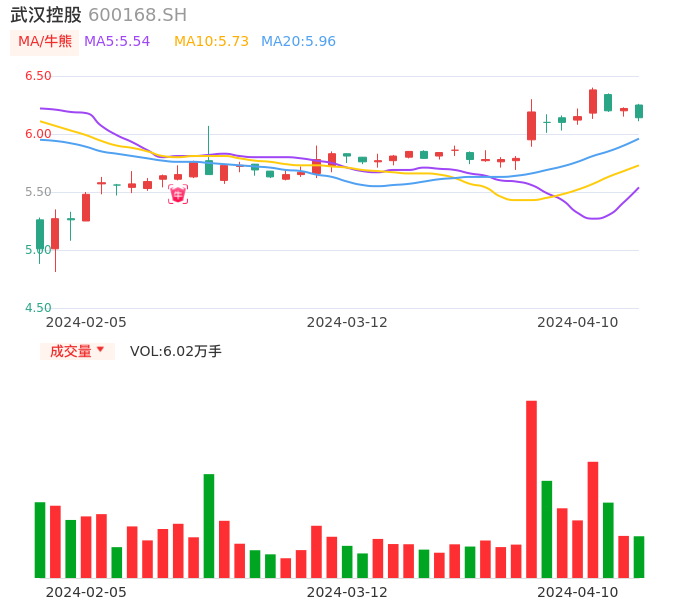 04月10日,武汉控股收报6.14,股价涨幅-1.29%,成交金额3708.64万元,换手率0.85%。