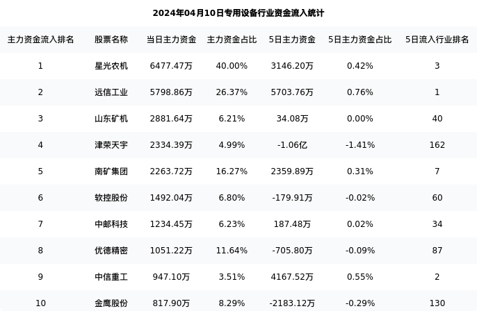 从主力资金流向来看,专用设备行业今日主力资金流入32.45亿元,在所有申万二级行业中排名:62/131。