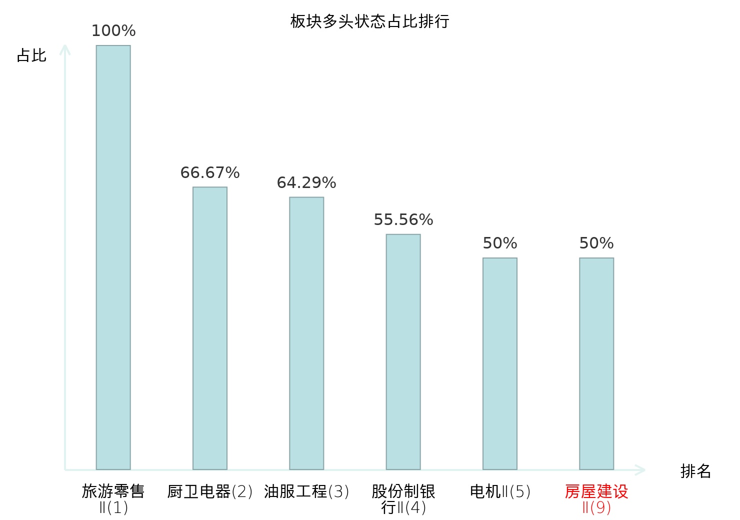 全市场所有行业板块中主力多头状态占比排名中,旅游零售Ⅱ板块位居第一。航海装备Ⅱ板块名次提升最快,较昨日上升78位。