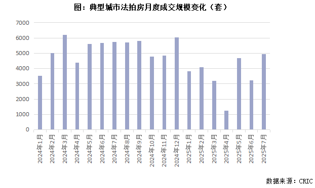 智通财经APP获悉,克而瑞地产发布的法拍房月报显示,2025年7月,月内法拍房挂拍量、成交量均有所上升,市场热度有所回落。7月法拍房供应规模4.4万套、成交4942套,双双创下年内新高。但溢价成交占比环比回落,高折扣房源更为买方所青睐,买方间竞争有所趋缓。