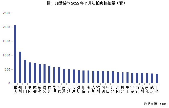 从各城市情况来看,本月共有12个城市新增挂拍套数超过500套,同样为年内新高。其中重庆更是达到了2074套,单城市单月挂拍量超过2000套,同样为年内首次出现。挂拍500套以上的12个城市合计供应9648套,占全国新增挂拍总量的22%。
