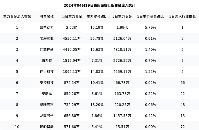 从主力资金流向来看,通用设备行业今日主力资金流入41.56亿元,在所有申万二级行业中排名:25/131。