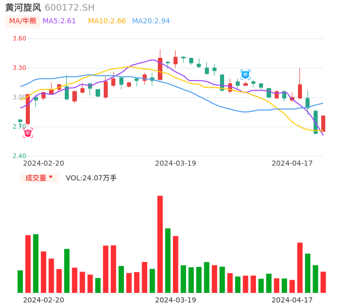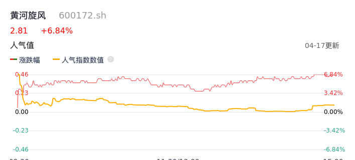 04月17日,黄河旋风收报2.81,股价涨幅6.84%,成交金额6661.17万元,换手率1.89%。