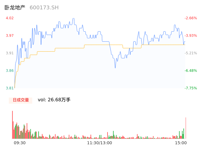 04月17日,卧龙地产收报3.97,股价涨幅-3.87%,成交金额1.05亿元,换手率3.81%。