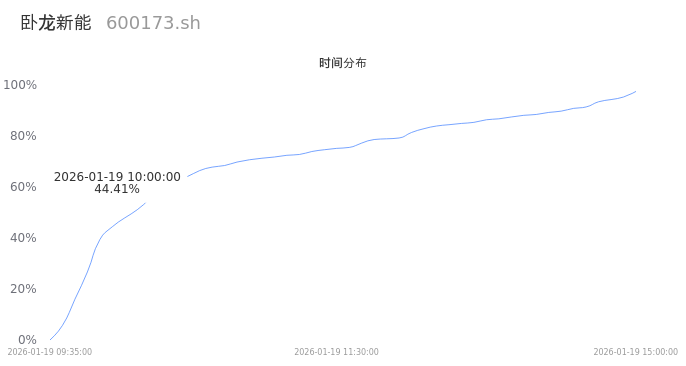 600173卧龙新能2026年01月19日成交24.80万手,成交金额1.87亿,相较昨日放量14.92万手,换手率3.54%,成交清淡。