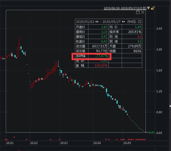 *ST美都曾一度是市值300亿的巨头。然而,资料显示,2016开始,*ST美都为了转型新业务,大规模展开并购,然而频频踩雷,最后业绩大亏还负债累累,随后股价狂泻。