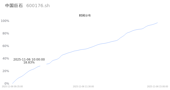 600176中国巨石2025年11月06日成交24.98万手,成交金额3.97亿,相较昨日放量1680手,换手率0.62%,成交清淡。