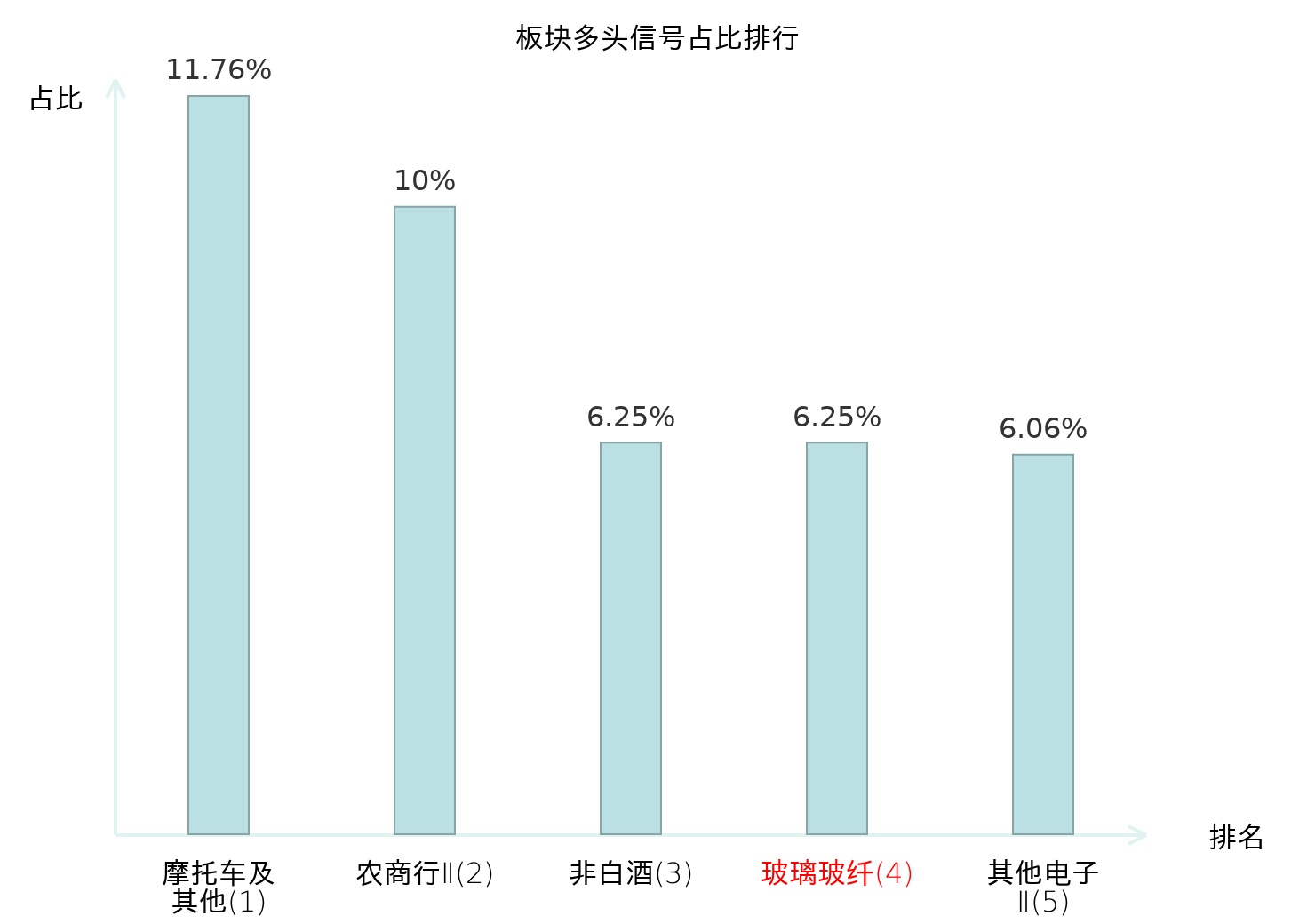 全市场所有行业板块中主力多头信号占比排名中,摩托车及其他板块位居第一。摩托车及其他板块名次提升最快,较昨日上升91位。
