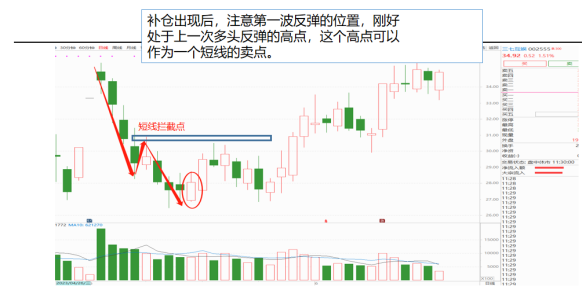 ② 反弹后要继续创新低,并走出阳线,此时就是补仓买点;