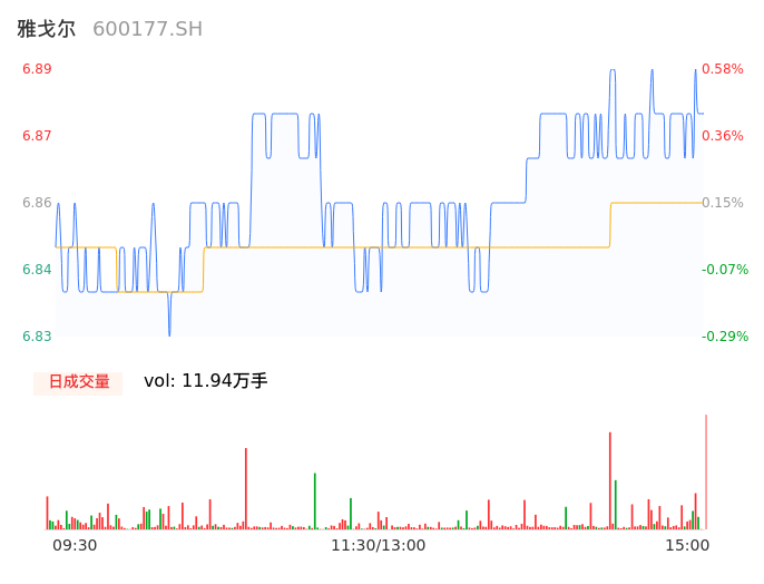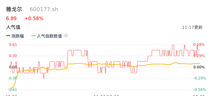 11月17日,雅戈尔收报6.89,股价涨幅0.58%,成交金额8192.44万元,换手率0.26%。
