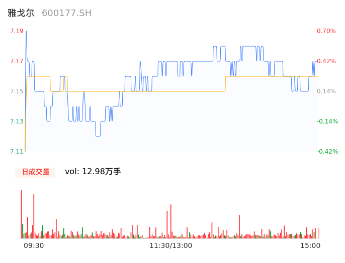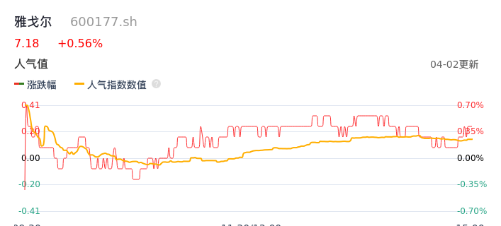 04月02日,雅戈尔收报7.18,股价涨幅0.56%,成交金额9289.92万元,换手率0.28%。