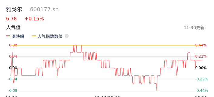 11月30日,雅戈尔收报6.78,股价涨幅0.15%,成交金额5424.58万元,换手率0.17%。