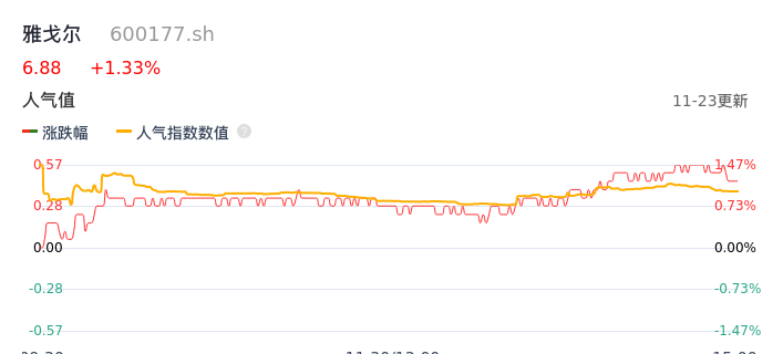 11月23日,雅戈尔收报6.88,股价涨幅1.33%,成交金额7619.34万元,换手率0.24%。
