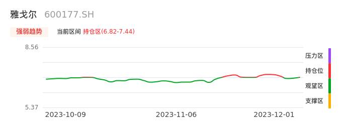 我们来看一下该股的九方特色指标强弱趋势的情况:雅戈尔近日从观望区上穿到持仓区。股价短期站稳多头区域,上升动能仍较为充足,可积极关注。后续重点关注上方压力位:7.44元是否能突破上攻。