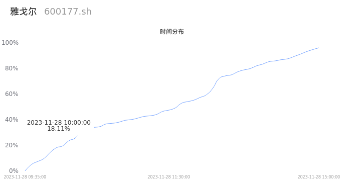 600177雅戈尔2023年11月28日成交11.29万手,成交金额7787.14万元,相较昨日缩量1.96万手,换手率0.24%,成交清淡。