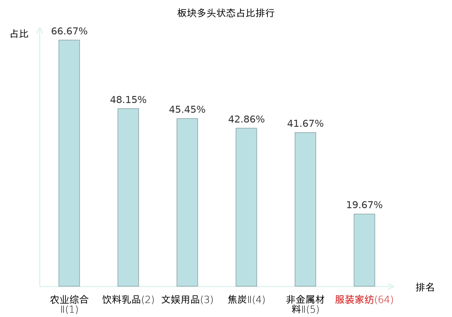 全市场所有行业板块中主力多头状态占比排名中,农业综合Ⅱ板块位居第一。特钢Ⅱ板块名次提升最快,较昨日上升46位。