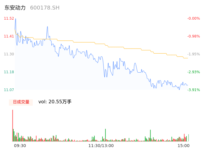 04月12日,东安动力收报11.09,股价涨幅-3.73%,成交金额2.31亿元,换手率4.45%。