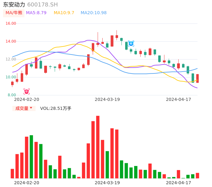 04月17日,东安动力收报10.32,股价涨幅9.90%,成交金额2.86亿元,换手率6.17%。