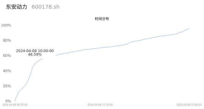 根据成交分布分析,该股票当天缩量成交,成交清淡。时间上看,早盘前半小时成交量占据当天总成交量的46.59%;价格上看,成交呈现中间峰。成交分布分析主要研究股票成交的分布特性,不具有预测功能,请知悉。