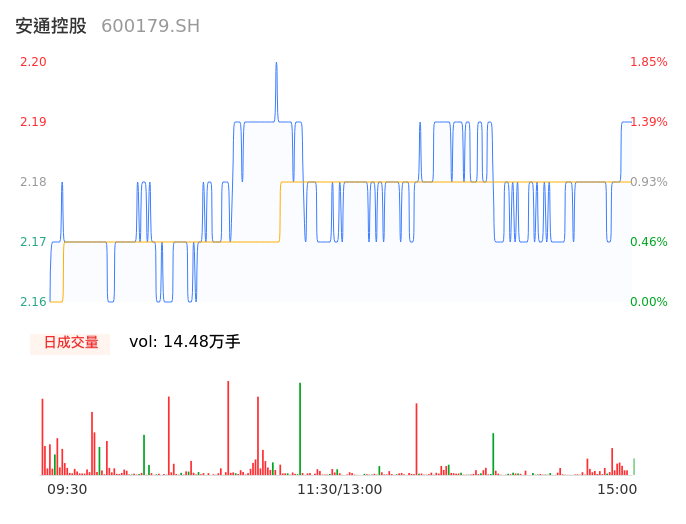 04月25日,安通控股收报2.18,股价涨幅0.93%,成交金额3150.46万元,换手率0.39%。