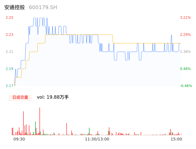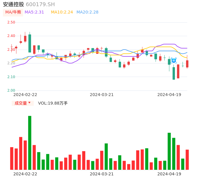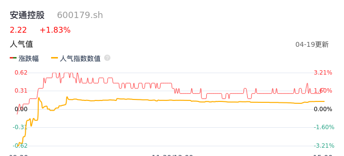 04月19日,安通控股收报2.22,股价涨幅1.83%,成交金额4418.54万元,换手率0.53%。