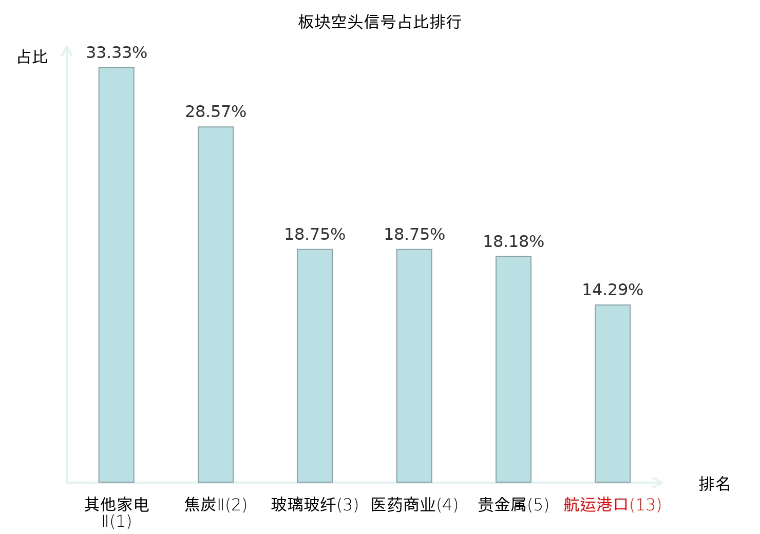 全市场所有行业板块中主力空头信号占比排名中,其他家电Ⅱ板块位居第一。工业金属板块名次提升最快,较昨日上升114位。