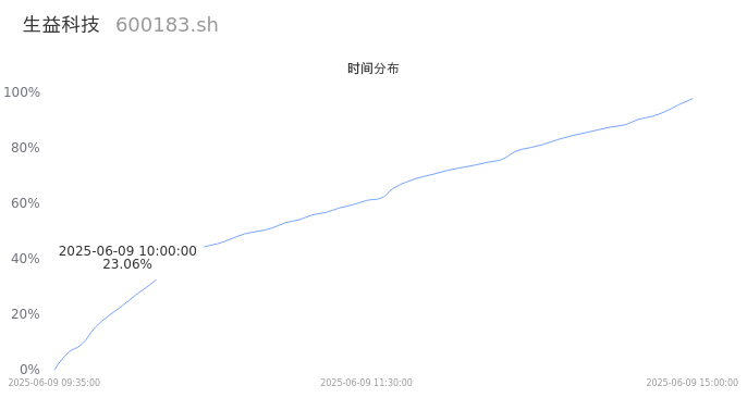 600183生益科技2025年06月09日成交21.46万手,成交金额5.99亿,相较昨日放量2.14万手,换手率0.90%,成交清淡。