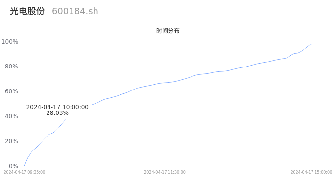 600184光电股份2024年04月17日成交5.66万手,成交金额4925.26万元,相较昨日缩量1.41万手,换手率1.11%,成交清淡。