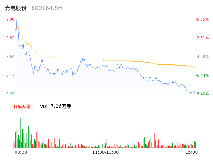 04月16日,光电股份收报8.35,股价涨幅-7.73%,成交金额6032.89万元,换手率1.39%。