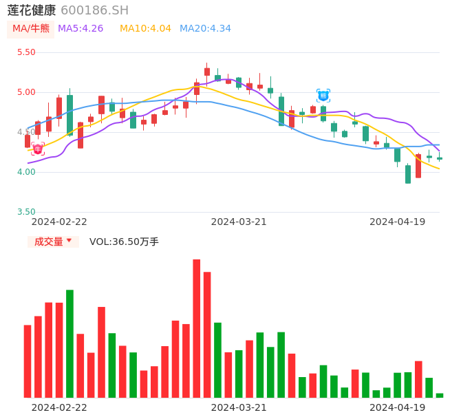 04月19日,莲花健康收报4.16,股价涨幅-0.48%,成交金额1.52亿元,换手率2.04%。