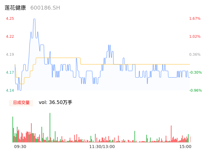 04月19日,莲花健康收报4.16,股价涨幅-0.48%,成交金额1.52亿元,换手率2.04%。