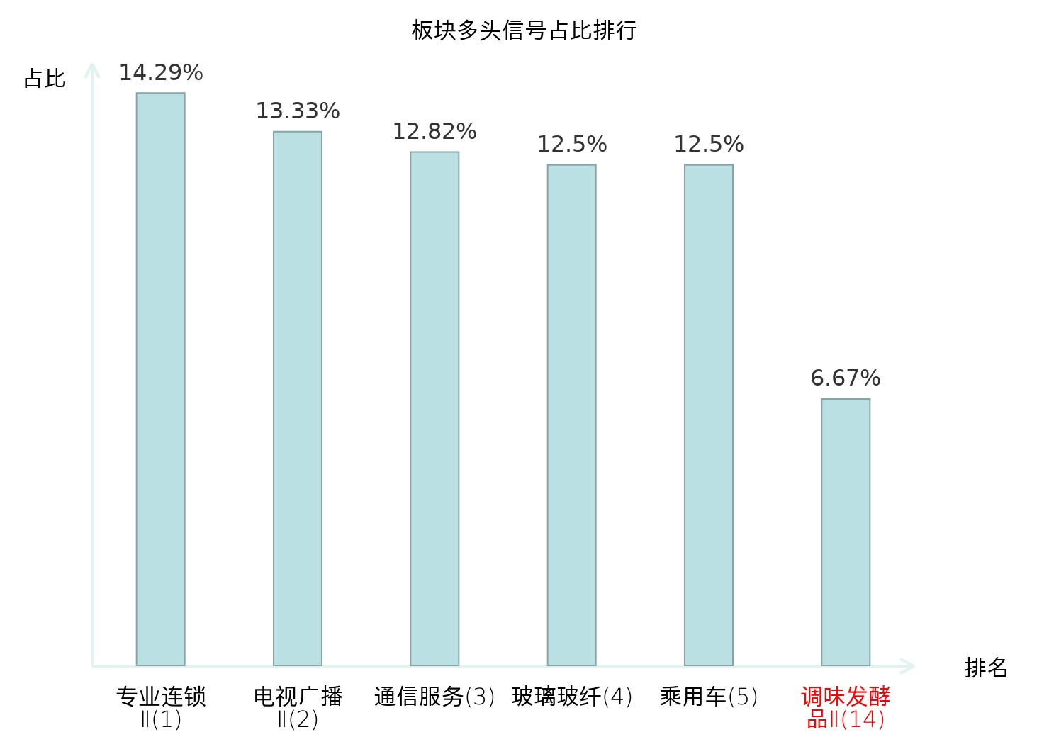 从主力宝信号数据分析,莲花控股所属的调味发酵品Ⅱ板块中共1只股票发出主力多头信号,主力多头信号占比在全行业中排名第14位,较昨日下降2位;较高的排名表明主力对该板块当日整体看多意愿相对较强,而此次小幅下降可能反映主力对该板块态度出现一定收敛;全市场所有行业板块中主力多头信号占比排名中,专业连锁Ⅱ板块位居第一;专业连锁Ⅱ板块名次提升最快,较昨日上升124位;这些变动揭示了主力资金在不同行业间的配置倾向变化,为投资者评估板块相对强弱及潜在结构性机会提供了客观参考依据。