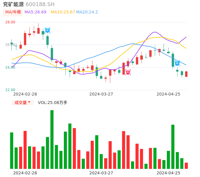 04月25日,兖矿能源收报23.63,股价涨幅1.29%,成交金额5.89亿元,换手率0.55%。