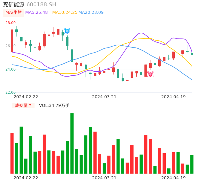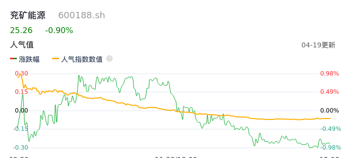 04月19日,兖矿能源收报25.26,股价涨幅-0.90%,成交金额8.86亿元,换手率0.77%。