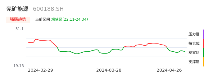 我们来看一下该股的九方特色指标强弱趋势的情况:兖矿能源自04月22日从持仓区下穿到观望区,股价近期持续走弱。短期已经进入空头行情,且下跌动能仍未衰竭。建议继续谨慎观望。