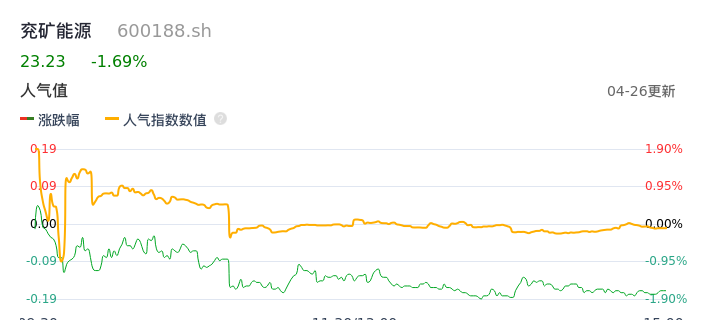 04月26日,兖矿能源收报23.23,股价涨幅-1.69%,成交金额8.65亿元,换手率0.82%。