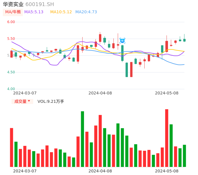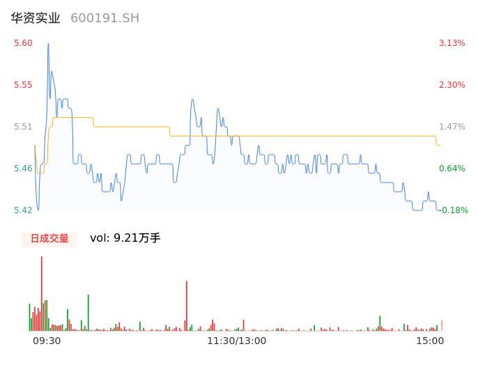 05月08日,华资实业收报5.42,股价涨幅-0.18%,成交金额5058.47万元,换手率1.90%。