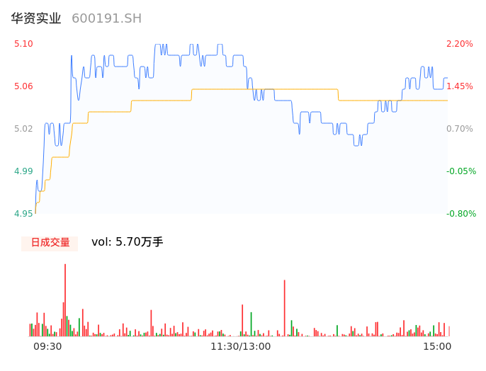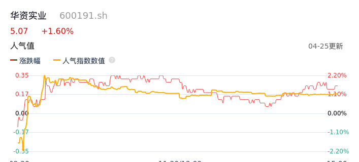 04月25日,华资实业收报5.07,股价涨幅1.60%,成交金额2879.73万元,换手率1.17%。