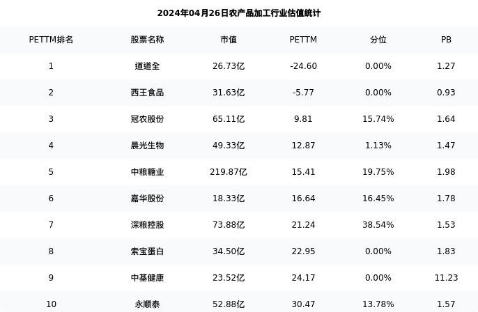 华资实业最新报告期数据为一季度,下表汇总了农产品加工行业内市值靠前的公司一季度主要经营数据